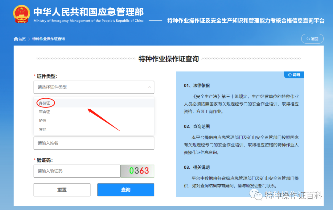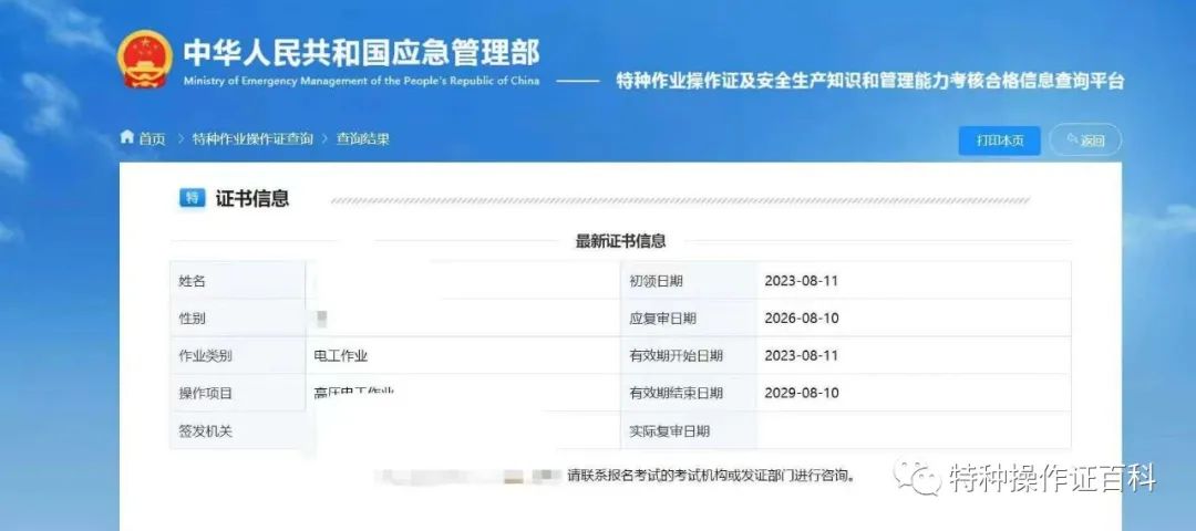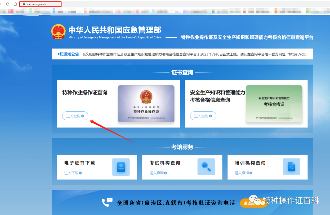 應(yīng)急管理部政府網(wǎng)站為全國特種作業(yè)人員操作證信息查詢系統(tǒng),